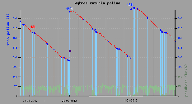 Dane można analizować w systemie REDGPS. Na wykresie widać dwa tankowania i jeden upust paliwa na -15L. Moduł CAN umożliwia wykrycie upustu w takim samym stopniu jak pływak. W przypadku postoju kiedy zapłon jest wyłączony informacja kradzieży paliwa będzie wioczna dopiero po uruchomieniu silnika. W skrajnych przypadkach może to być nawet po kilku dniach np. długi weekend. Utrudni to wykrycie sprawcy kradzieży o czym wiedzą kierowcy i należy wziąź to pod uwagę decydując się na moduł CAN. |